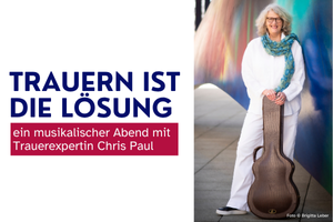 Chris Paul erzählt und singt lebendig von ihren Erfahrungen mit Trauernden. Sie erhalten Informationen von einer erfahrenen Trauerexpertin, erkennen sich in ihren Beispielen wieder und spüren in den live gesungenen Liedern tiefe Gefühle. Lassen Sie sich mitnehmen in einen Abend, der die Seele berührt, tröstet und aufklärt. Teilen Sie mit Menschen jeden Alters einen ermutigenden Raum, in dem es um tiefe menschliche Erfahrungen geht. Lachen und Weinen, Hoffnung und Schmerz liegen dabei nah beieinander. Chris Paul singt live und verbindet die Songs mit ihrem Wissen über Trauerprozesse und Trauerbegleitung. Interessieren Sie sich für Trauer? Haben Sie selbst Verluste zu betrauern? Unterstützen Sie trauernde Menschen? Seien Sie Teil der Gemeinschaft dieses Abends.